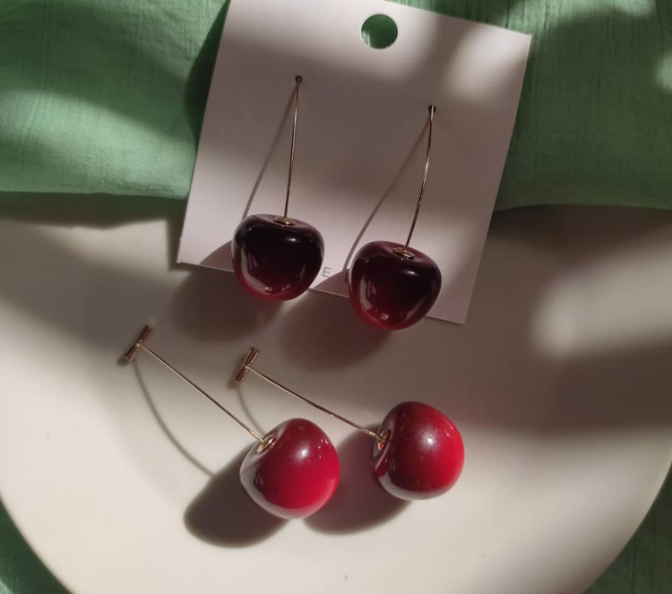 گوشواره ترند گیلاسی با کیفیت ترین مدل موجود در بازار تمامی اتصالات رنگ ثابت، با آبکاری عالی ،اصلا سنگین نیست و خیلی سبک و راحت ، مخصوص استایل های تابستونه👌🏻😍🍒