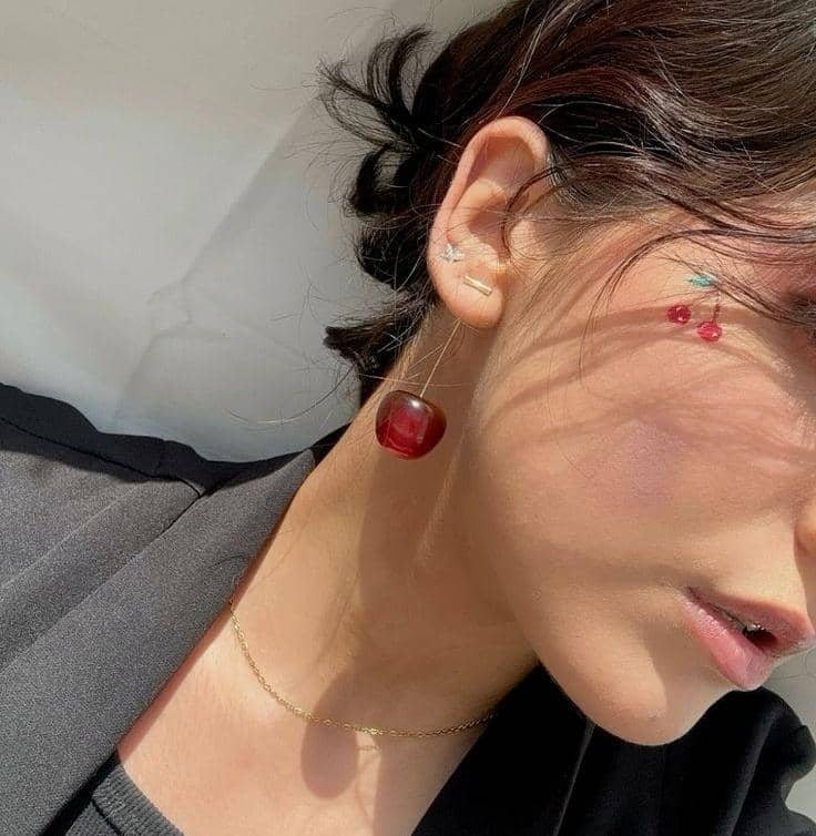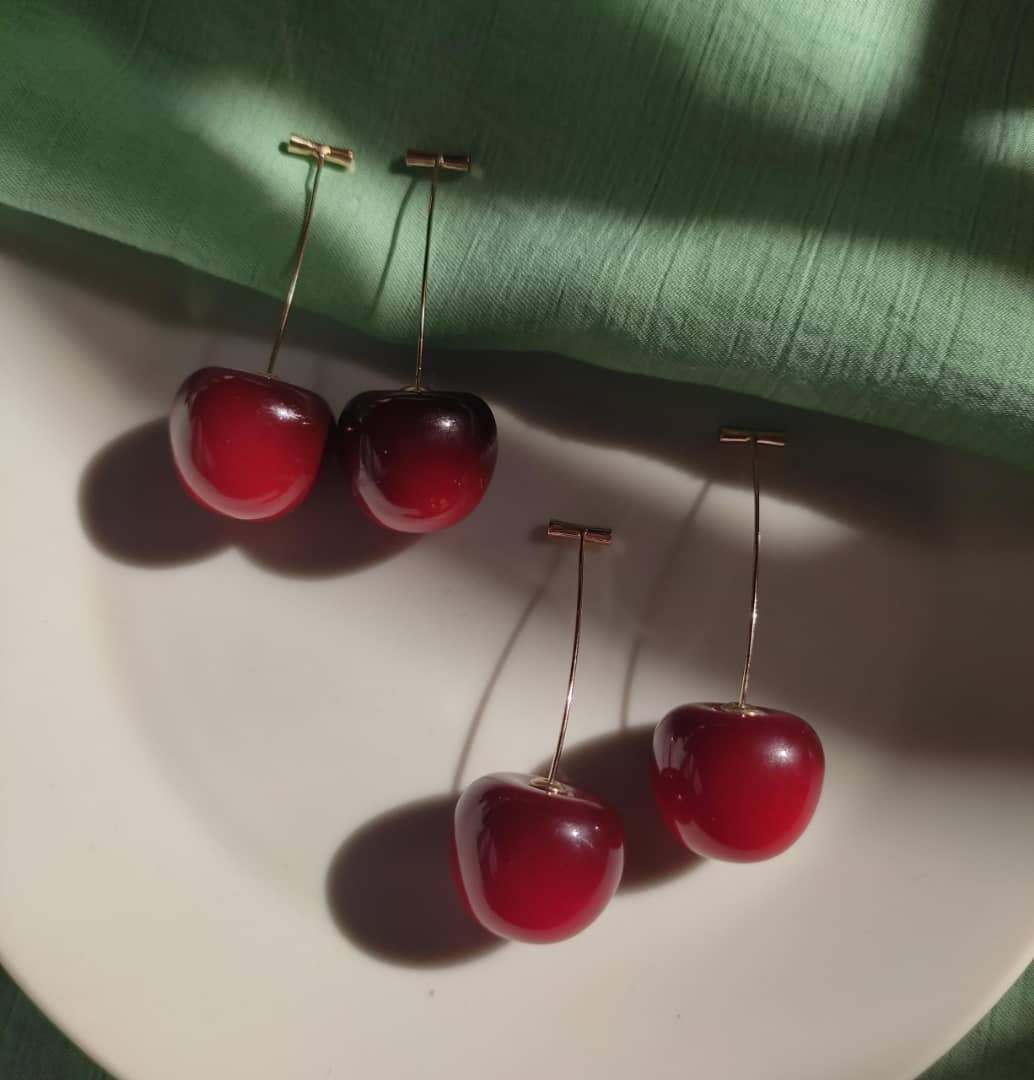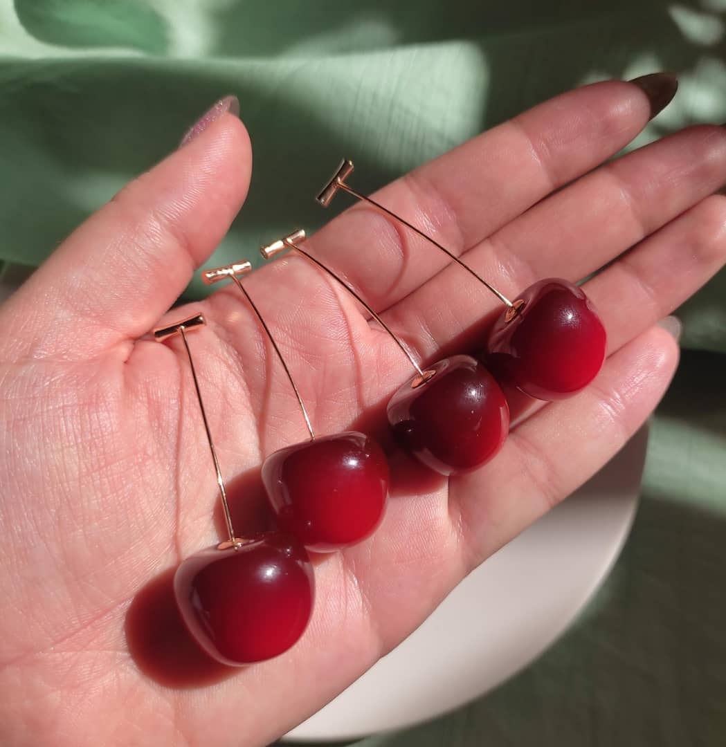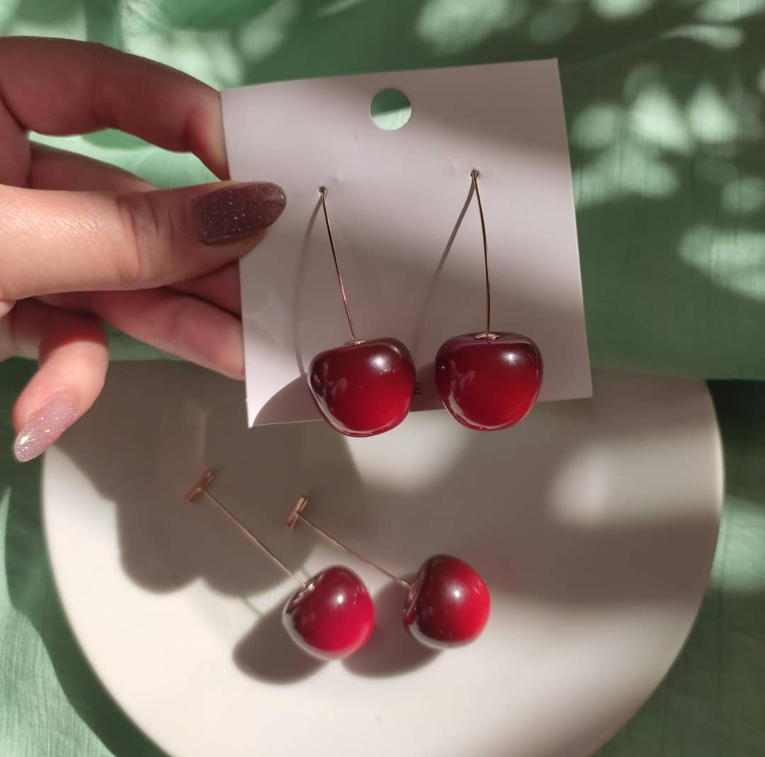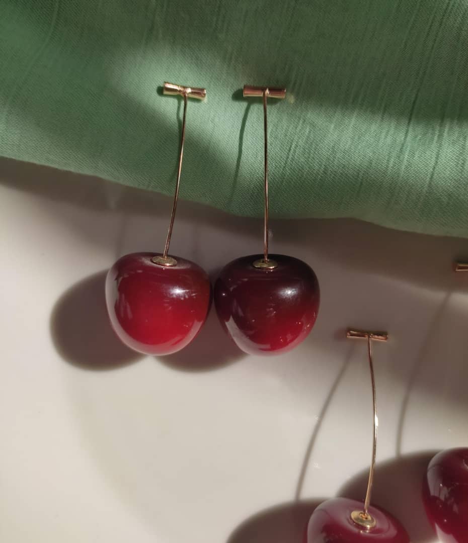 گوشواره ترند گیلاسی با کیفیت ترین مدل موجود در بازار تمامی اتصالات رنگ ثابت، با آبکاری عالی ،اصلا سنگین نیست و خیلی سبک و راحت ، مخصوص استایل های تابستونه👌🏻😍🍒