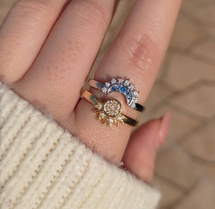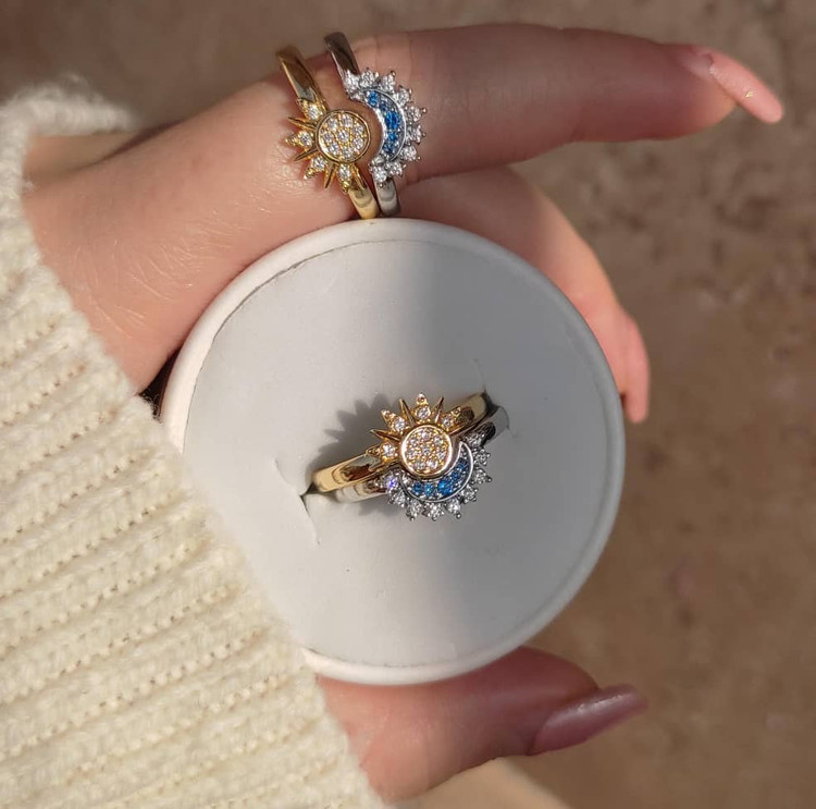 انگشتر کاپلی طرح ماه و خورشید فری سایز