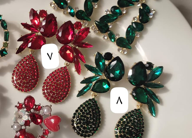 گوشواره های طرح جواهر با نگین های اتمی و با کیفیت پایه ضد حساسیت با تم رنگی یلدایی ، فشن و مجلسی